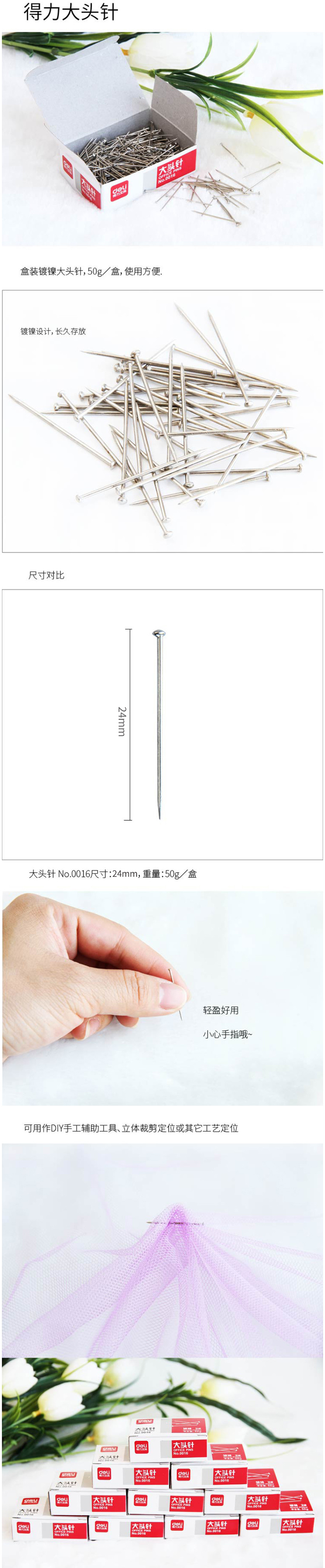 得力 图钉 0016 大头针 50G 50299 500盒/箱